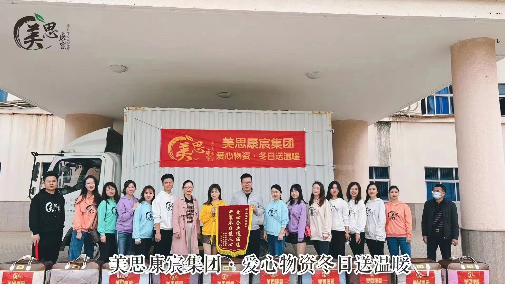 2021年11月15日,美思康宸集團(tuán)為惠州產(chǎn)業(yè)園區(qū)所在的水口街道辦的130多戶低保戶送去精心準(zhǔn)備的愛心棉被,送去初冬里的第一份溫暖關(guān)愛。